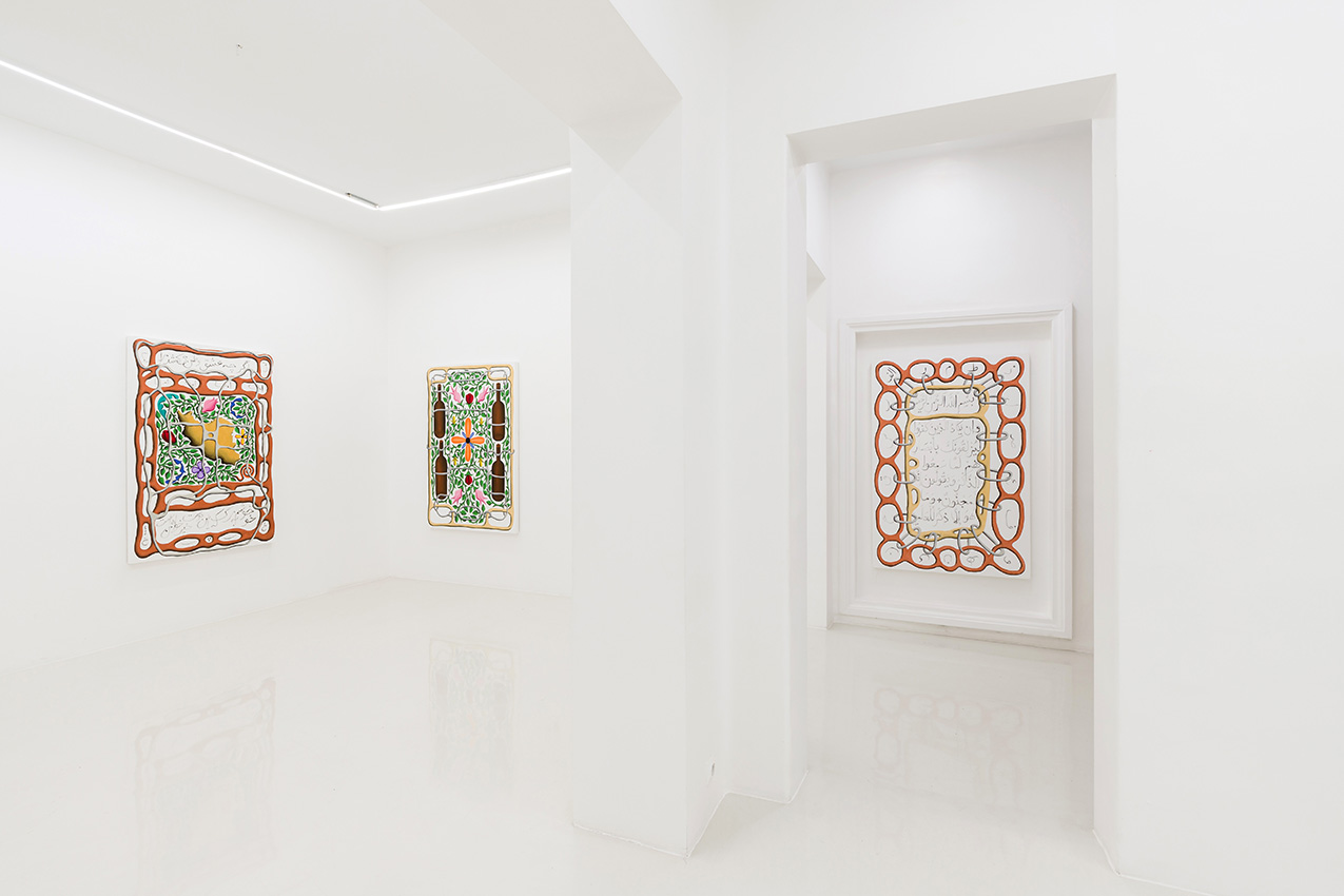 انصاری با انتخاب کلمات و سوژههای فرهنگ و ادبیات عامیانه و استفاده از تصویر آنها به عنوان عناصر نقاشیهایش، بستری از شیدایی را شبیهسازی میکند. شیداییای از جنس راننده کامیونها و زندانیها و دیوانهها که با سوز دل و جدیت جملهای را پشت ماشینشان مینویسند، خالِ شمع و خالِ اشکی روی بازویشان میکوبند یا در خیالاتشان گم میشوند و به خیابان میزنند و با لباسهای چرک در کوچهها راه میروند و خاطرات معشوق را با قلبی سوزناک در هر جایی فریاد میزنند. انصاری چارچوب نقاشیاش را در پشت این پوسته گسترش میدهد و گل های تخت تذهیب را سه بعدی می کشد؛ مانند زمانی که برای اولین بار بازیهای دو بعدی رایانهای از تخت بودن خارج شدند و بعد سوم پیدا کردند. او اجزای نقاشیهایش را روی زمینهی سفیدی شبیه به زمینهی نرم افزار های تولید تصویر می چیند. گویی فرمها و عناصر را در ذهنش فتوشاپ میکند تا تصویر دلخواهش را پیدا کند. تصویر پرندهای را از روی نقش گل و مرغ قلمدانی به خاطرش میسپرد و قلبی را از کتاب علوم دورهی راهنمایی از آن خود و نقاشی اش میکند و از جای دیگر گلها را. او همهی عناصر را در ذهنش میچیند و بعد مینشیند پای اجرای چند روزهی نقاشیهایش تا بهای هنرمند «پای کار» و صنعت گر را بپردازد و به مخاطب بدهکار نشود. هر جور شیطنتی که دلش میخواهد را نقاشی میکند و معماری و منطق مینیاتور ایرانی و بازیهای رایانهای را در هم میآمیزد. در حالی که مخاطب غرق داستان های عاشقانهی نقاشی هاست، نقاش آنطور که میخواهد ذهن بیننده را برای رسوخ دستاورد های تصویریاش هک میکند و به آن ورود میکند تا شیوهای نو از برخورد با تصویر را در ذهن تماشاگر ثبت کند. این رسوخ و تاثیر گذاری به شیوهای نرم اتفاق میافتد.